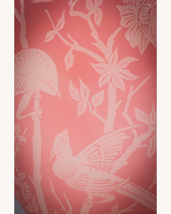 Rosaline to alabaster with birds amongst branches.